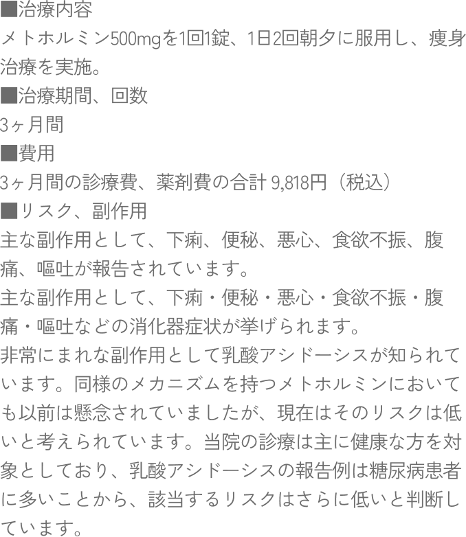 ※Seifarth, C., Schehler, B., & Schneider, H. J. (2013). Effectiveness of metformin on weight loss in non-diabetic individuals with obesity. Experimental and clinical endocrinology & diabetes, 121(01), 27-31