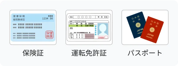 本人確認書類(保険証、運転免許証、パスポート、学生証等)をご準備ください。