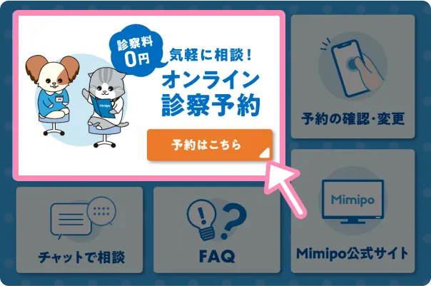 Mimipo公式LINEの画面下部よりメニューを開き、予約の確認・変更を選択した先から行います。ただし、予約の変更・キャンセルは1時間前までです。それ以降の変更・キャンセルはLINEにて直接ご連絡ください。