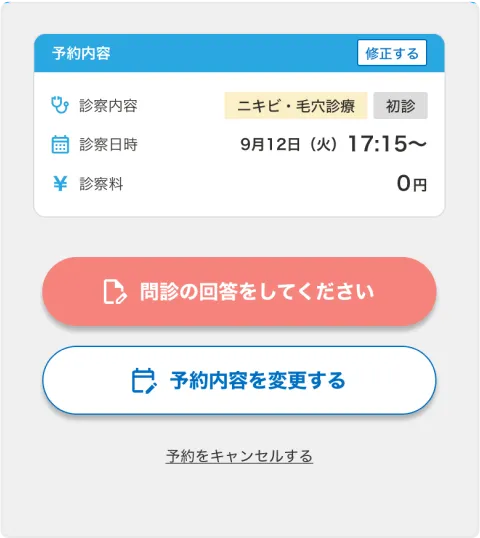 - 予約の変更およびキャンセルは、診察の1時間前までです。