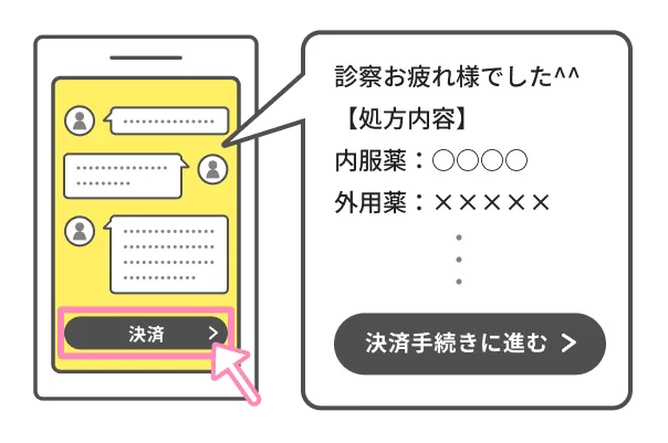 診察終了後、医師からの処方内容に基づき、LINEで購入案内が届きます。案内に従い、お薬のご購入手続きをお願いいたします。