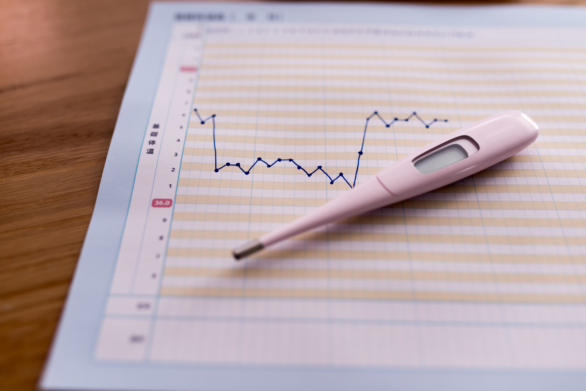基礎体温は、起床直後・安静時に測る体温で、主に女性のホルモンバランスや排卵の有無を把握するために使われます。