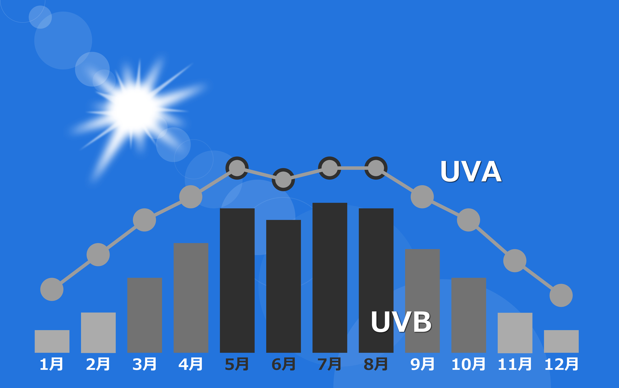 紫外線は一年を通じて降り注いでいますが、その量は季節や時間帯によって変動します。