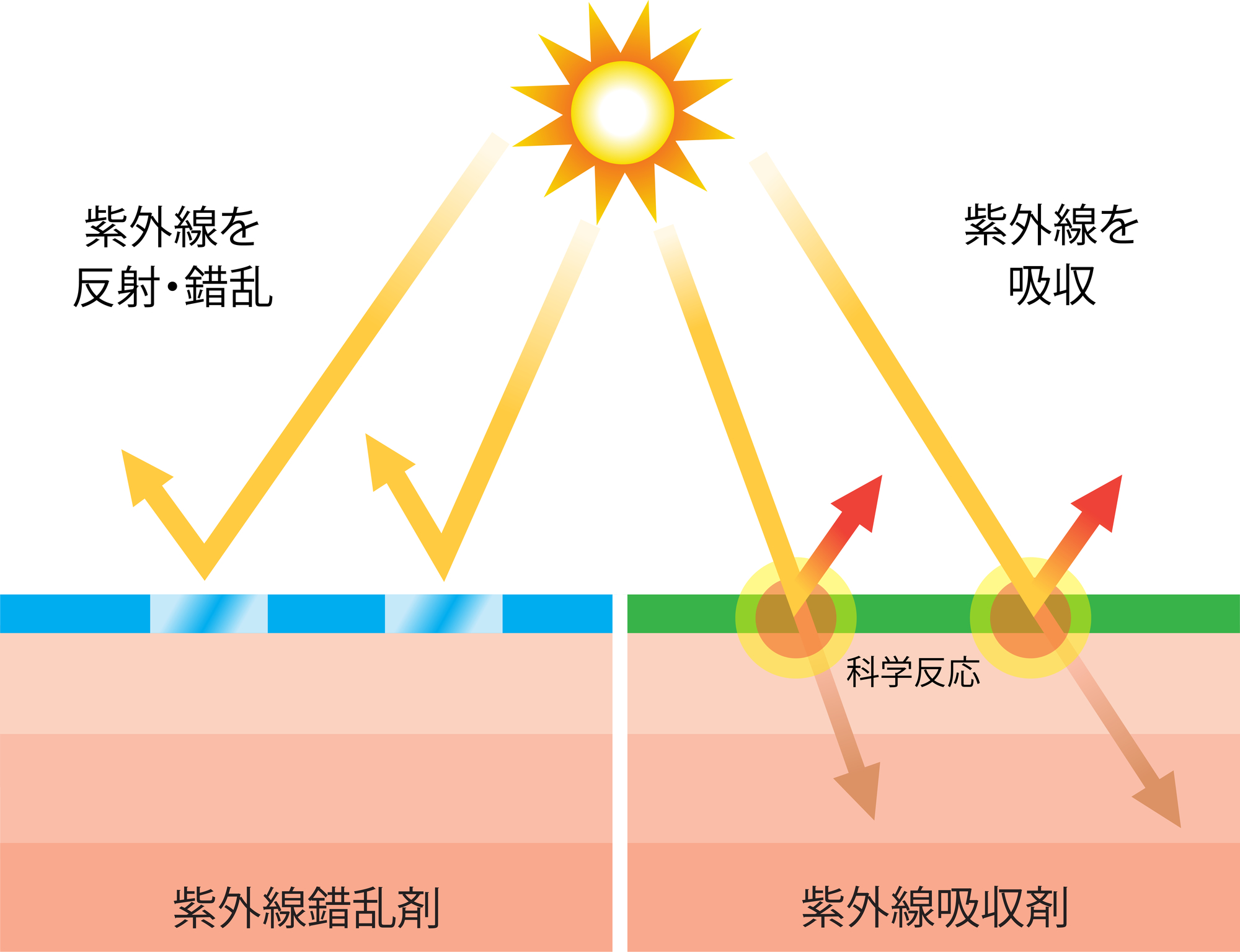 日焼け止めには、紫外線吸収剤と紫外線散乱剤の2種類の成分があります。